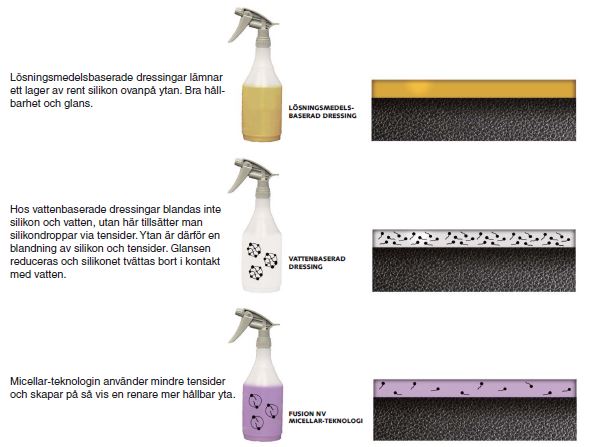 - Hög glans på plast gummi och vinyl – kan också användas på läder, laminat och trä