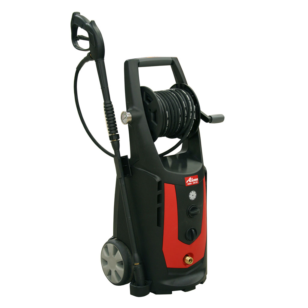 Alcon typ G155 är enkelt flyttbar och tuff högtryckstvätt med bra kapacitet och design. 5 m. elkabel samt inbyggd kemtank, inbyggd slangupprulle med 12 m. stålarmerad högtrycksslang och start o stoppautomatik som standard. G155 är utrustad med pumphuvud i mässing och keramikkolvar för lång livslängd. Gjord för 1-fas.
