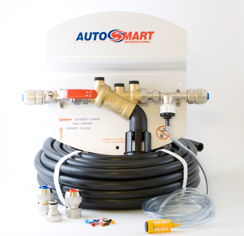 Smartspray är en ejektorblandare som används för att få en effektiv och säker blandning av högalkaliska kemikalier. Blandaren har en flexibel 15-meters slang som standard, men man kan som tillval ha en 25-meters slang.