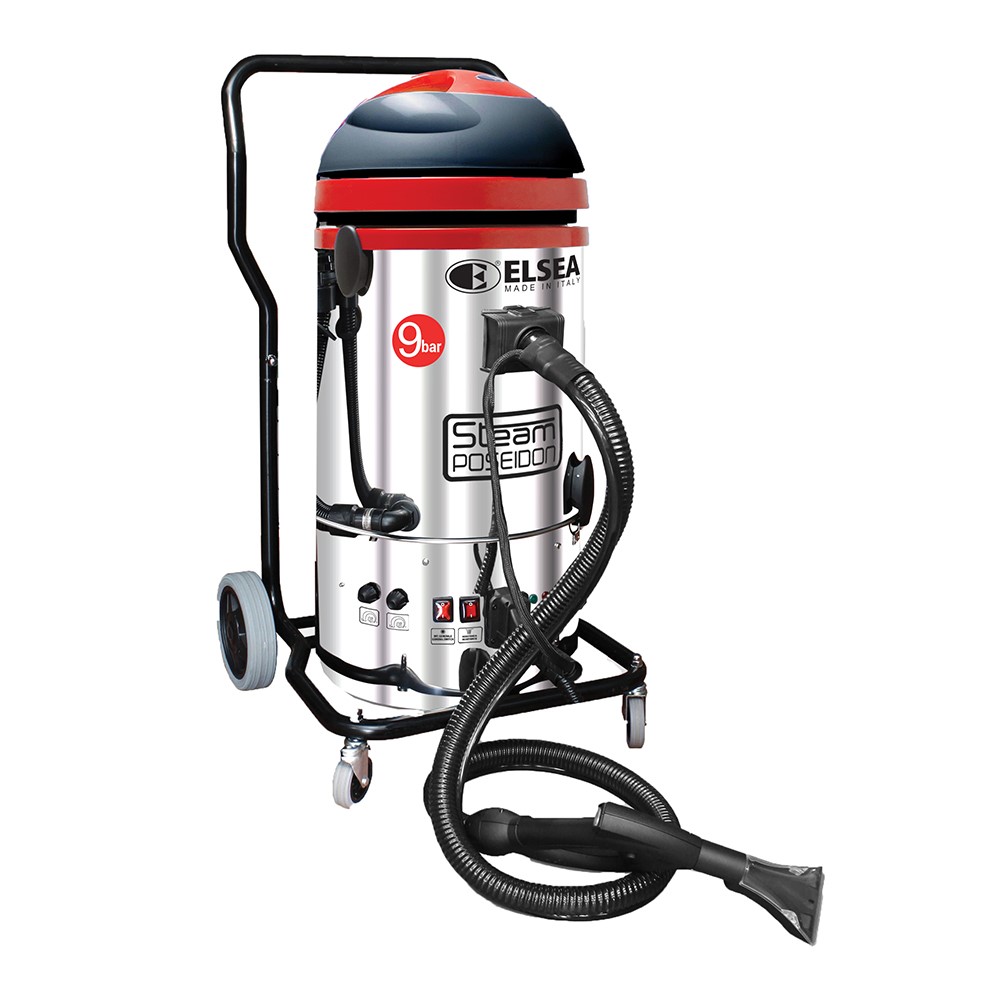 Steam poseidon är en italiensk ångtvätt i industrikvalitet. Med het ånga upp till 165°C rengörs ytor effektivt utan att behöva blanda starka kemikalier.